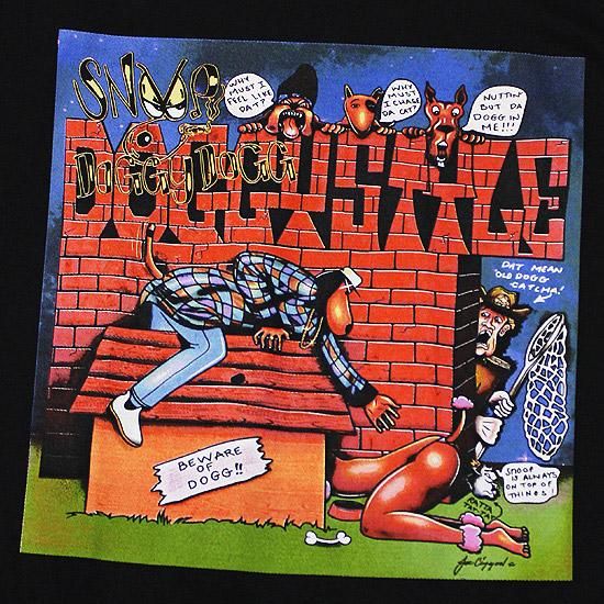 スヌープドッグの1stアルバム「DOGGYSTYLE」のジャケットをモチーフにしたデザインのTシャツです。
