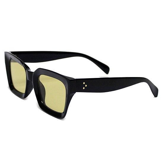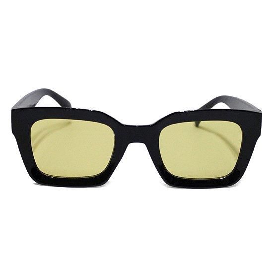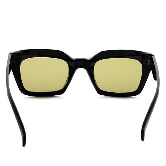 ブラックフレームにイエローレンズで仕上げた太目なフレームが特徴的なウェリントン型サングラス。