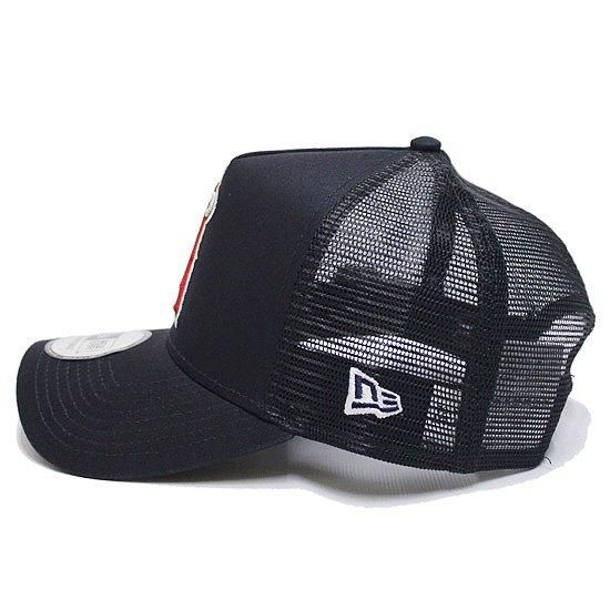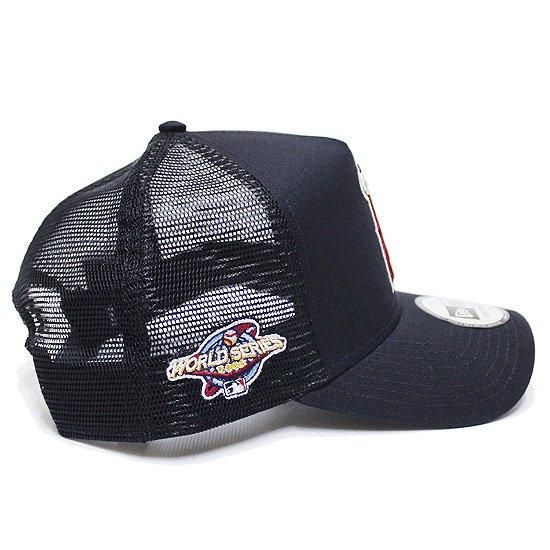 フロント、バイザーのコットン地と通気性の良いメッシュ地を採用し、フロントにチームロゴ刺繍、サイドにワールドシリーズロゴパッチ刺繍を施したスナップバック仕様のトラッカーメッシュキャップ。