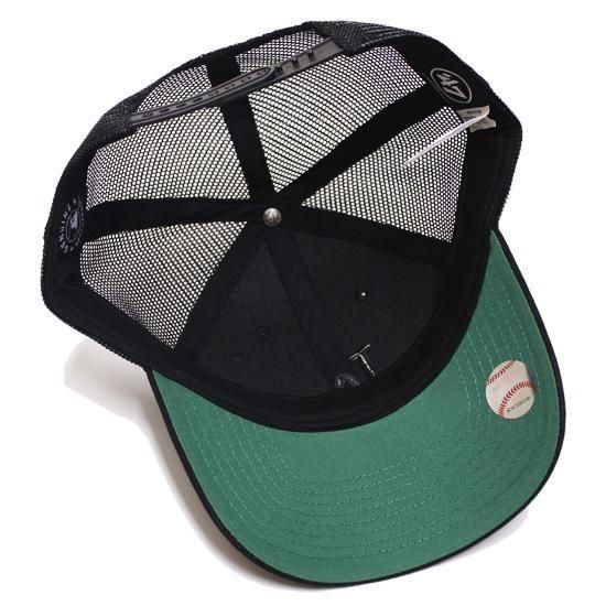 フロント、バイザーのコットン地と通気性の良いメッシュ地を使用し、フロントにボディと同色のチームロゴ刺繍を施したメッシュキャップ。