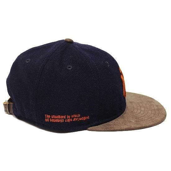 柔らかい質感のメルトン地ボディとスウェードバイザーを組み合わせ、フロントにロゴ刺繍、サイドにワード刺繍を施したRETRO CROWN 9FIFTYキャップ。