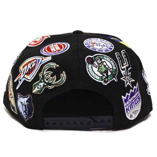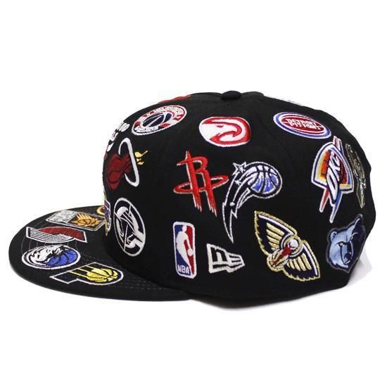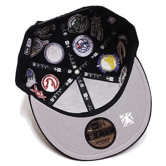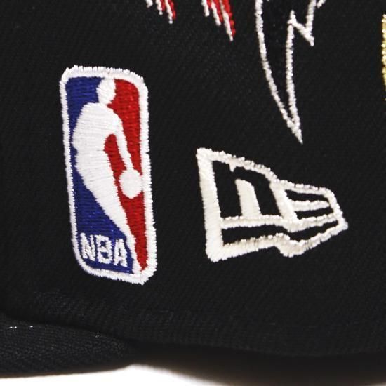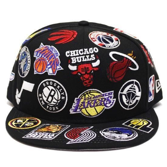 NBA全チームのロゴ刺繍を全面に施した総柄デザイン9FIFTYスナップバックキャップ。