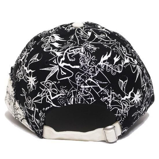 全面に岡本太郎のアートワークプリント、バイザーにTARO刺繍を施し、カラーを切り替えした総柄デザインの9THIRTYアジャスタブルキャップ。