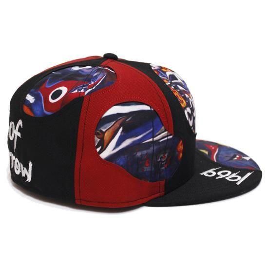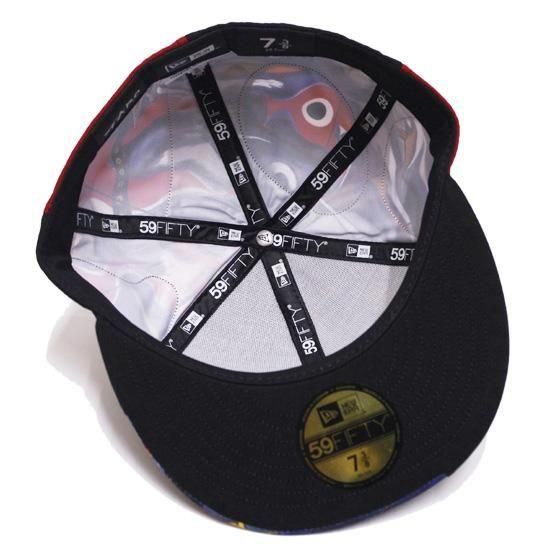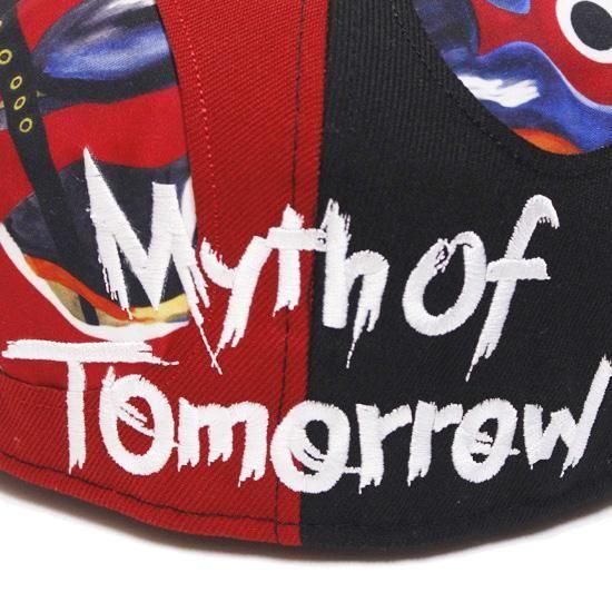 ボディに岡本太郎のアートワーク「明日の神話」のプリントを落し込みカラーを切り替えし、フロント、バック、バイザーにワード刺繍を施したデザインの59FIFTYフィッテドキャップ。