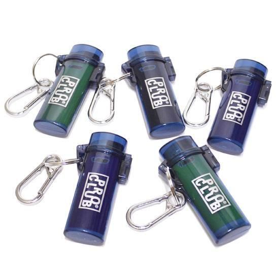 カラビナキーホルダーが付いたプラスチック製のライターケース。