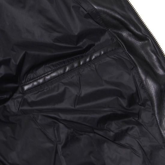 滑らかな光沢と柔らかな質感のヴィーガンレザーを使用し、700フィルパワーのダウン90%、フェザー10%のダックダウンを採用した別注モデルのレザーダウンジャケット。